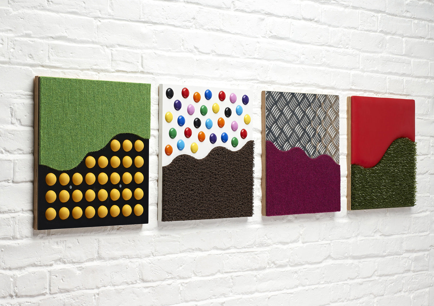 The 40 x 40cm squares have special fixings that enable them to be attached to any wall and be changed around from time to time. They are designed to be very robust, offer good tactile contrast and look attractive; individually and in groups.